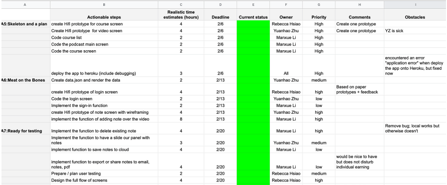 Crossing off important functionalities of some of the most successful learning apps, we had a better visualization of the app we wanted to create. We felt that these video-centered apps that have added interactiveness (playback spee and add comment feature) are useful for learning and would give us more insights for developing a mobile podcast app.